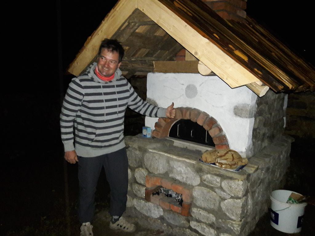 It was the first critical test after completion of the bread oven and it was successful! Tashi, a farmer from Ura, distributes the sweet smelling bread. Everybody has earned their share because they had all worked hard to make this dream come true: Jigme (12), Ugyen (16), Kencho, a helpful and very talented neighbor, and of course Sonam, a Jack of all trades, who already became acquainted with the art of oven building in 2015 when he stayed for a while with Christof and Silvia in Austria.