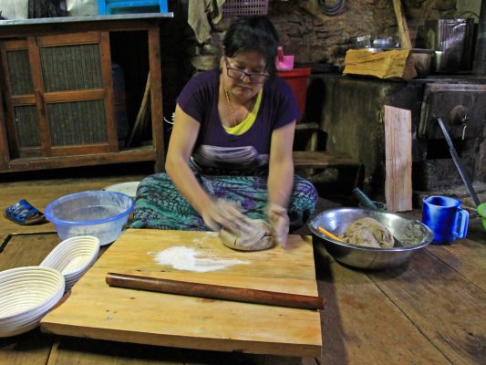 Likewise, Tashi spent two months in Austria in 2014 as a candidate of the Organic Farmers Exchange Programme (OFEP), an initiative by the non-profit association Bhutan Network. She was lucky to spend some time with Roswitha Huber at her mountain chalet in the Alps of Salzburg. Roswitha is a well-known bread baking expert in the region who holds workshops for school kids and adults alike, on where bread actually comes from and how it is produced. Tashi also became deeply inspired by the art of bread baking, and her big dream since had been to build a bread oven in Ura, her village in Bumthang, Bhutan. “We do not know bread baking“, she explains, “but we want to learn it, for our guests and for ourselves. It is something new and exciting and it blends in well with our culture”.