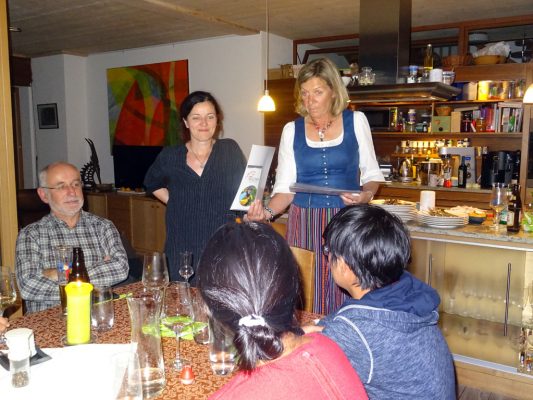 The yearly dinner with Maria and Christoph Faistauer (regional school inspector Salzburg) and with the principals and teachers of the Agricultural School Bruck. Also in 2018 our OFEP candidates Tshering Delkar (Zhemgang) and Kuenzang Choeden (Bumthang) prepared delicious and spicy Bhutanese dishes for their hosts in Bruck, Salzburg. After dinner, Kristel Josel and Ulrike Cokl awarded certificates of participation.