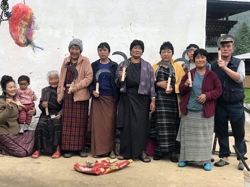 Young farmers like me in Phongdo village are fortunate to get support from Bhutan Network. This association not only helps us financially, but also encourages us to consider new ideas. Upon my request, Aum Pem (aka Ulli) recently facilitated to buy sickles and a rice-husking machine for our village; the combined cost of these tools is worth more than our usual annual income.