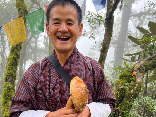 In the Kingdom of Happiness, dried mushrooms have been traditionally extremely popular as gifts for guests. The interest of various communities in porcini mushrooms (Boletus edulis) has been growing for some time now thanks to the advocacy of our mushroom expert Daniel Winkler and the NMC (National Mushroom Center Bhutan). They are excellent edible mushrooms and locals can market them seasonally and earn a good income.