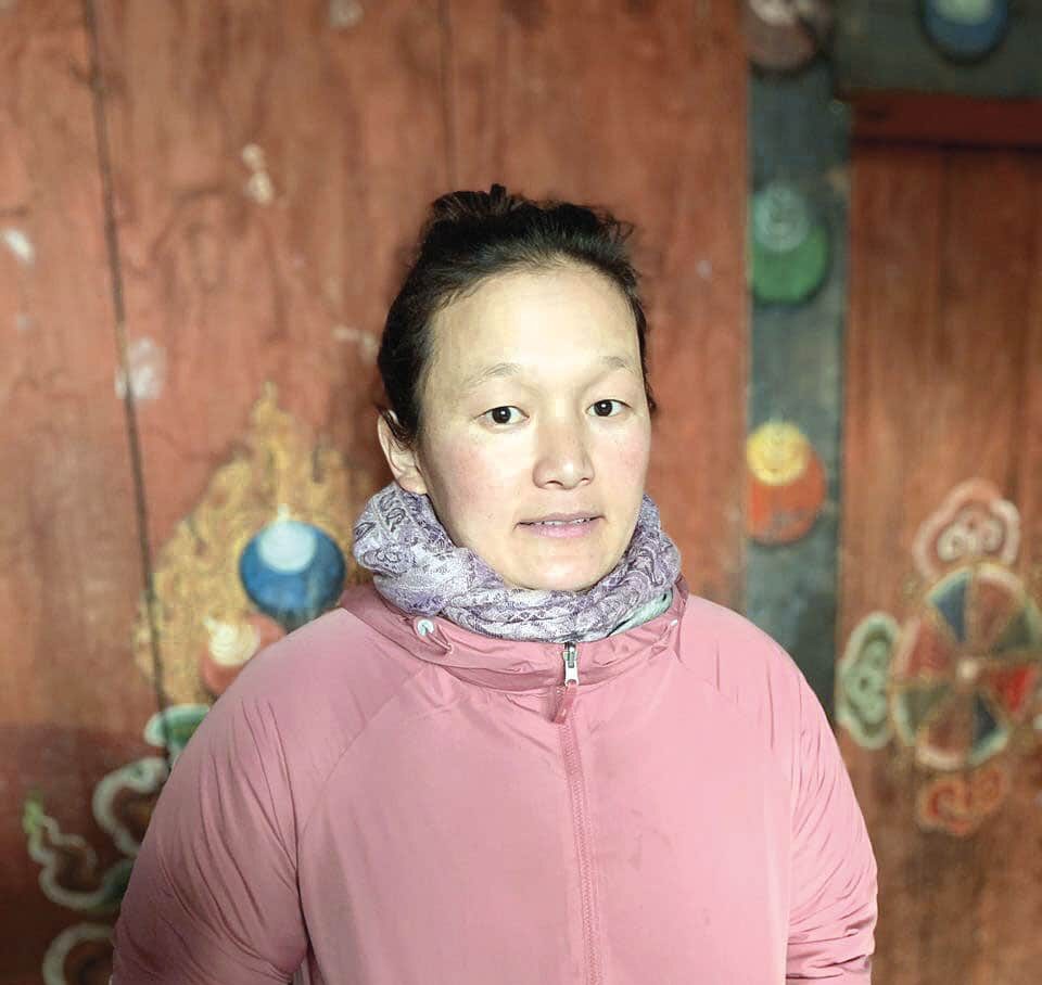 Aum Chencho hat 70 Yaks und die meiste Zeit zieht sie mit ihnen durchs Hochgebirge auf der Suche nach Weideland. Sie übernachtet in Notunterkünften. Die größte Herausforderung für sie ist der Mangel an fließendem Wasser und Strom. Eine kleine Solaranlage wäre eine große Hilfe, da sie hoch oben in den Bergen genug Sonnenlicht bekommt. Bhutan Network hat ihr kürzlich ein Zelt gesponsert und Am Chencho ist sehr begeistert, denn das Zelt läßt sich einfach auf- und abbauen. Sie kann es problemlos überall hin transportieren, wo es einen guten Cordycep-Platz gibt. Früher schleppte sie Baumstämme, Stangen und Plastikplanen mit sich, um ein Zelt aufzubauen. Das war harte Arbeit und äußerst umständlich. Am Chencho hat gegen viele Herausforderungen anzukämpfen, unter anderem auch, dass sie an kalten und trockenen Frühlingstagen Yaks an Schneeleoparden verlieren kann.