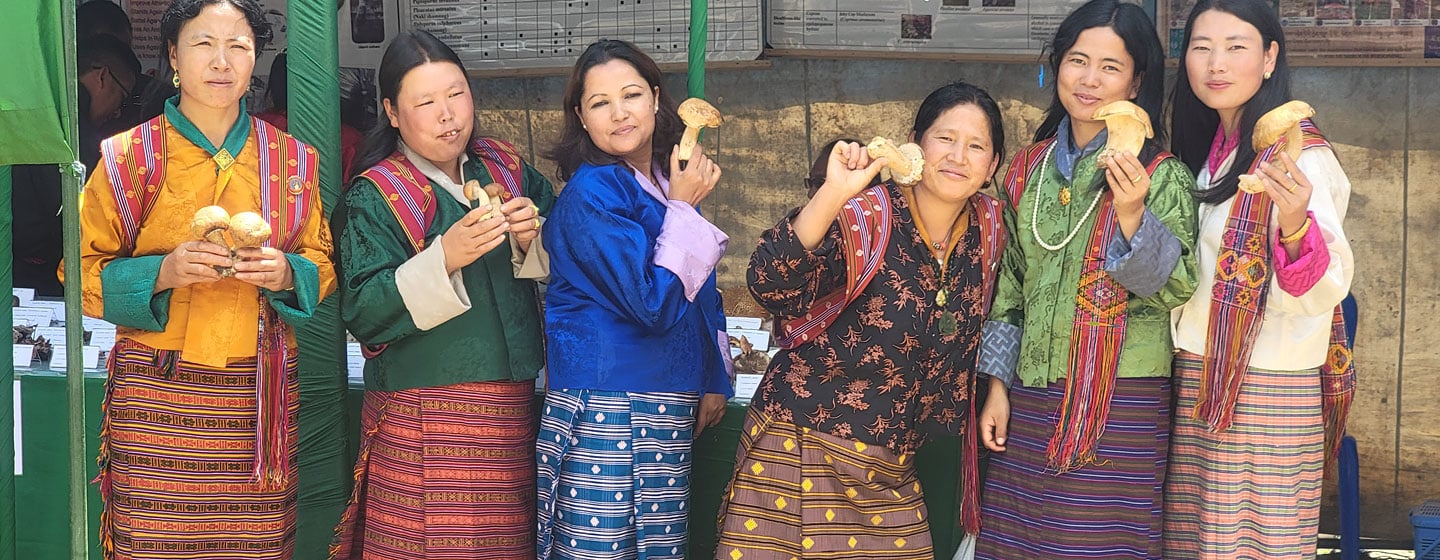 A few years ago, Bhutan Network developed the first specialized mushroom tours in Bhutan together with the Bhutanese travel agency Bhutan Homestay and the mycologist Daniel Winkler. It didn’t take long before local mushroom lovers joined the groups to search the forests for mushrooms and generally learn more about mushrooms in Bhutan. The annual mushroom hunt with Daniel in the Bhutanese forests has become very popular. Furthermore, Daniel is always ready to provide advice and support to locals on identification and sustainable collection of mushrooms. He occasionally collaborates with the National Mushroom Center (NMC). Interestingly, during our mushroom trips we realized that although a few families in Bhutan collected porcini mushrooms for their own consumption, the majority considered them inedible!