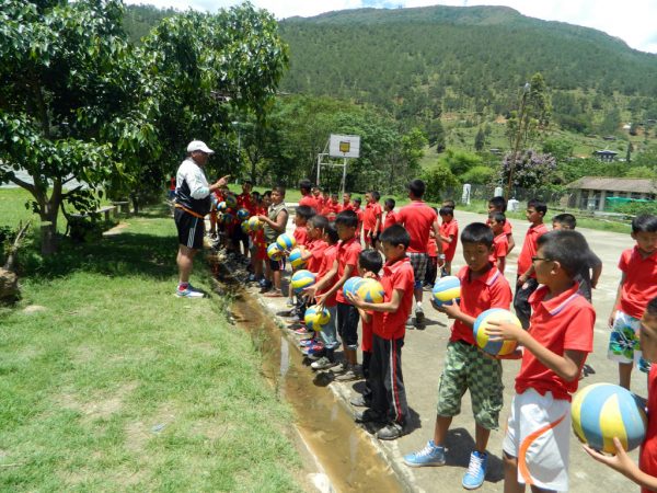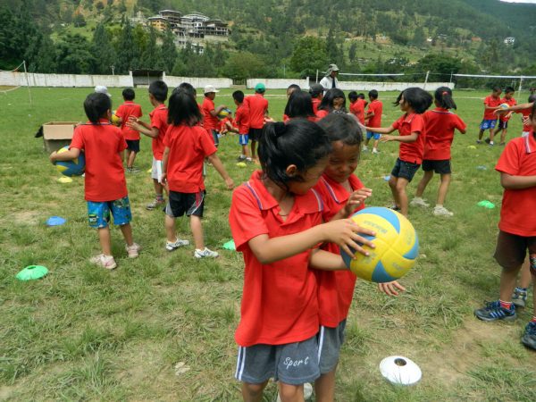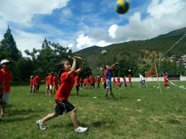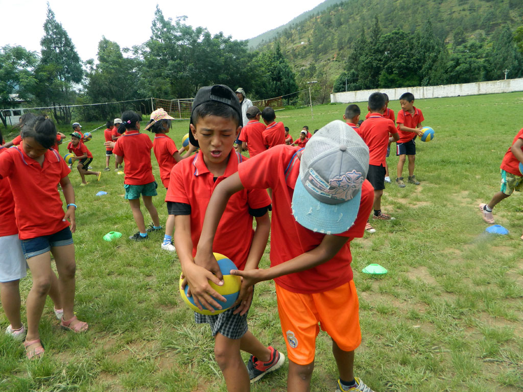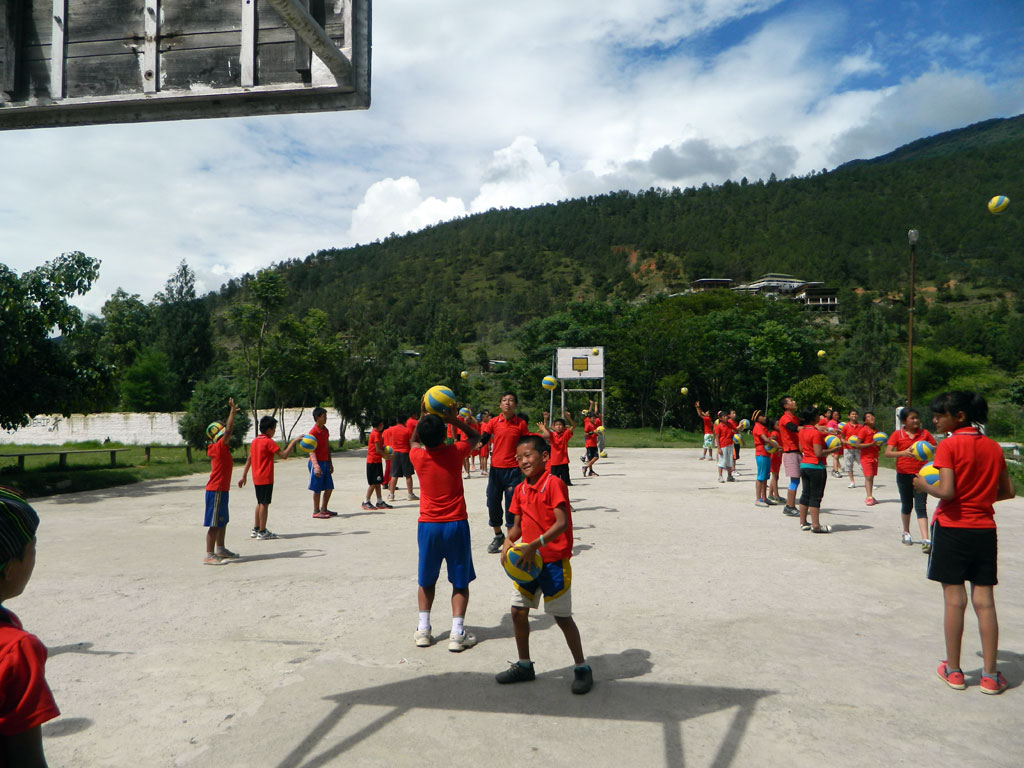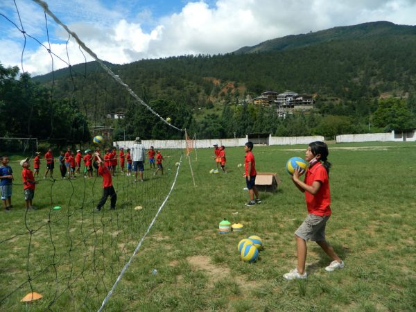 Since a few years however, initiatives have been launched in the Himalayan kingdom to increase sports education for young people and kids, particularly in schools. Volleyball is one of the targeted sports as it features many advantages: It is a non-contact sport, thus it can be played by all age groups and mixed genders. It is therefore also very suitable for promotion in Bhutan, in and outside schools alike. Given the strong Bhutanese community spirit, team sports are furthermore very well received by the public. According to Gross National Happiness (GNH) health is about physical and psychological well-being which is highly nurtured by team sports such as volleyball.